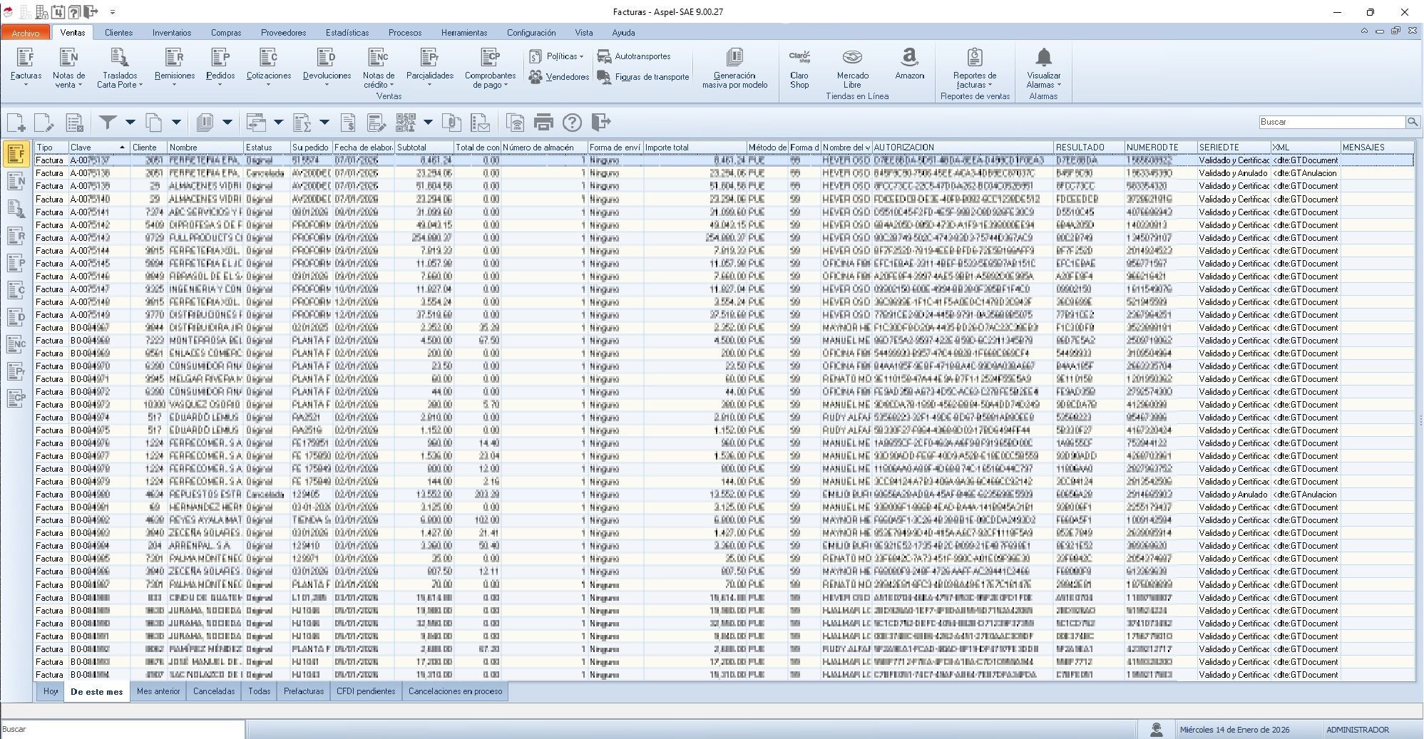 Sistema para emisión de factura electrónica en linea (FEL)